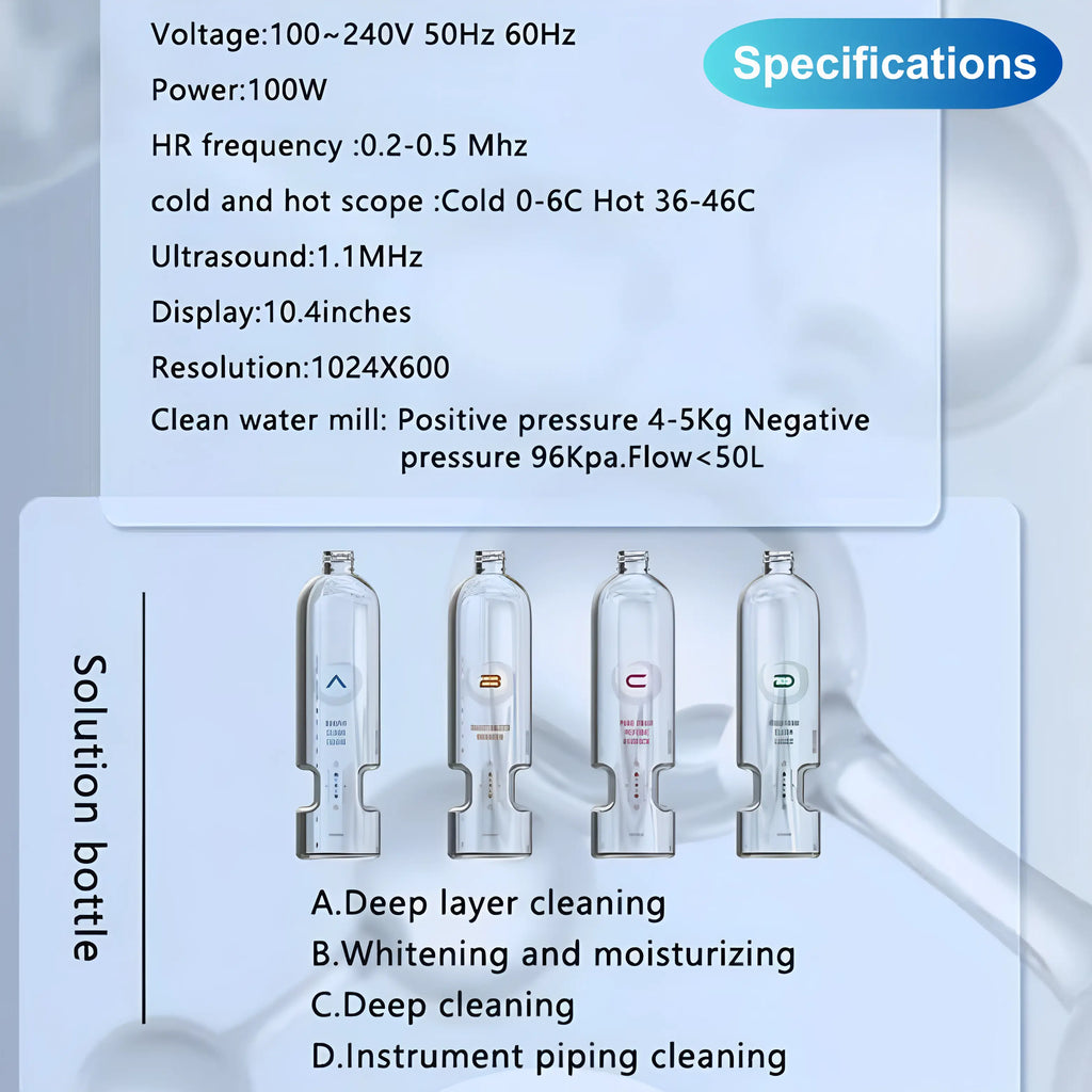 Bubble Cleaning Handle: Our Bubble Cleaning Handle combines powerful vacuum suction with multiple moisturization cycles to thoroughly cleanse and hydrate the skin. The vacuum technology targets various skin areas, effectively removing impurities and delivering multiple rounds of hydration. This handle ensures a deep clean that leaves the skin refreshed and radiant.