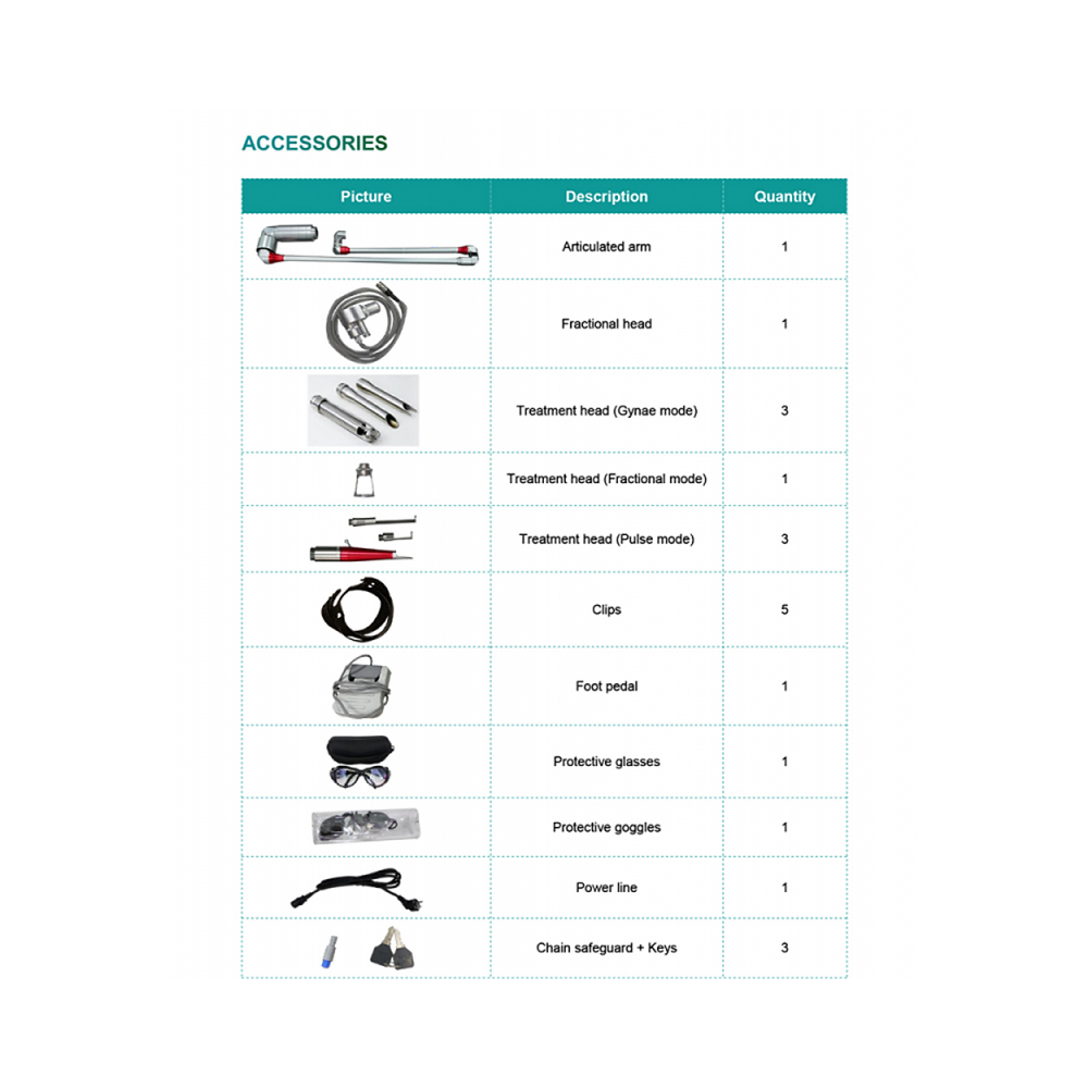 - Treatment Mode: Fractional mode, Gynae mode, Pulse mode