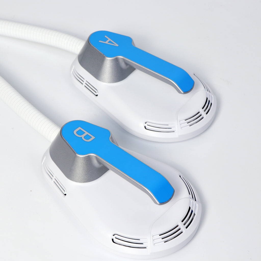 2 handles allow for complete coverage of the treatment areas, and to reduce treatment time, as multiple areas can be treated at the same time.